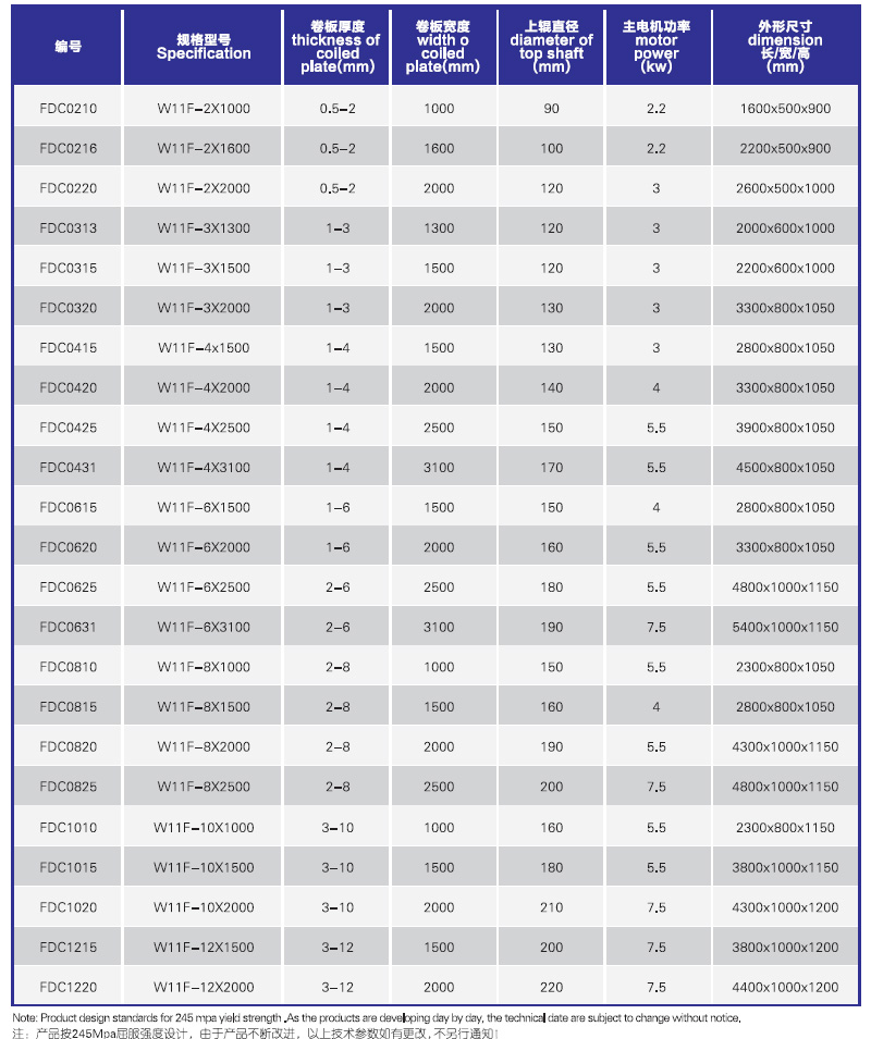 W11F系列非對稱式卷板機,得益于不對稱性輥子的運動,實現了預彎功能。通過側輥的升降控制卷圓直徑的大小,卷制精度高,結構緊湊,操作維修方便,是一種先進實用性價比較高的卷板設備。